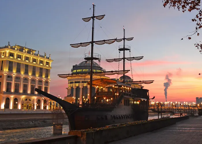 Das 4-Sterne Hotel Mirror ist etwa 0,5 km vom Flughafen Skopje entfernt und bietet ein traditionelles Hammam und ein Außenschwimmbad an. Prime Class lounge liegt in 2 km Entfernung und Skopje ZOO ist in 10 Minuten mit dem Auto vom Hotel aus zu erreichen.